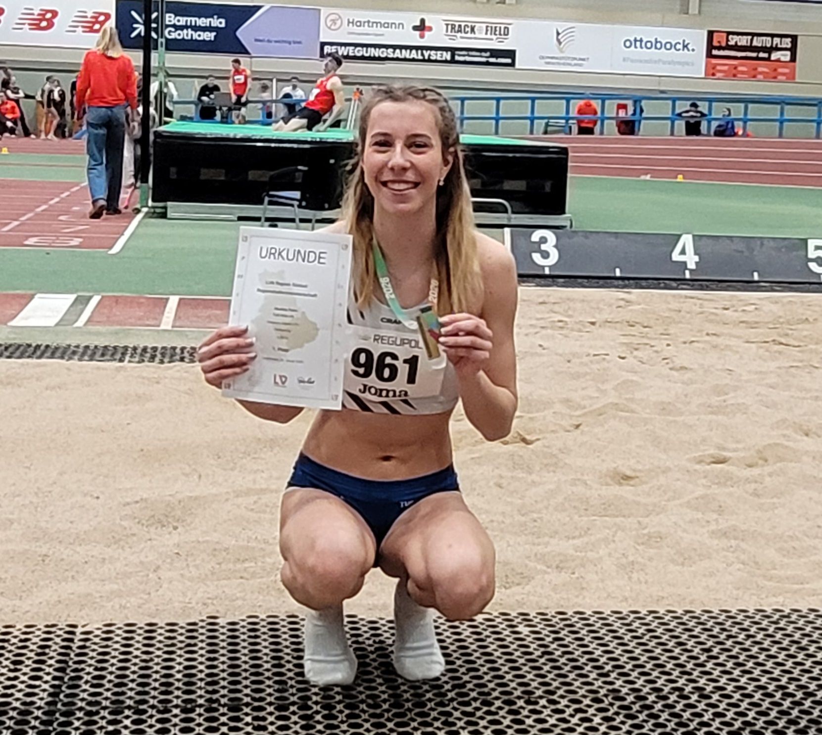 25.01./Leverkusen. Das absolute TuS-Glanzlicht bei den Regionsmeisterschaften der U18/U20 setze Matilda Palm. Ihre 5,76m sind weiter als jemals zuvor eine Frau für den TuS Köln rrh. gesprungen ist - über alle Altersklassen hinweg! Das ist wirklich ein "Pfund", was der 15jährigen von Carl Seeliger trainierten Athletin hier gelungen ist!