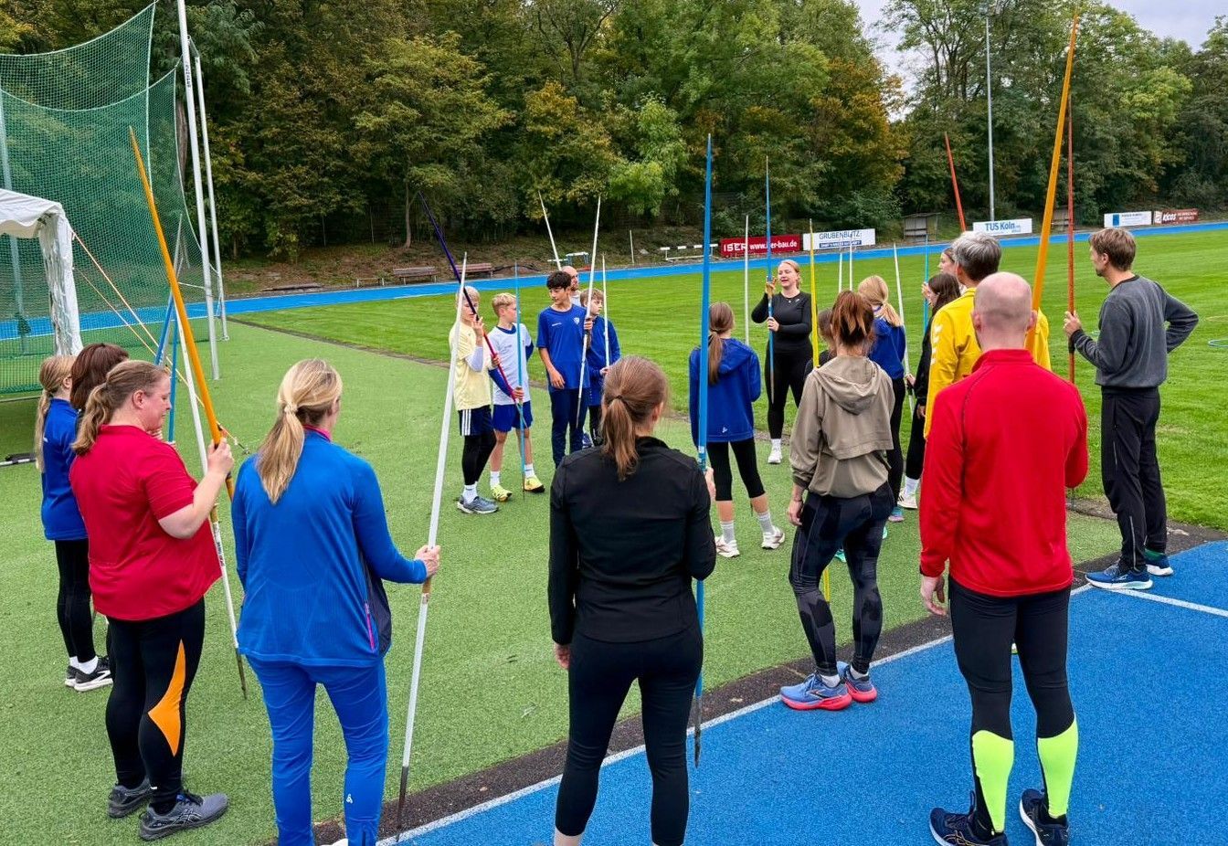 Die U-14-Trainerinnen Luca Reinhardt, Anja und Natalie Roller wollen ihren Athletinnen und Athleten besser informierte Eltern bieten. Darum laden sie zum Saisonabschluss am letzten Tag vor den Herbstferien zum Familientraining ein. Ihr Team, aber ausnahmsweise auch die Eltern dürfen auf die blaue Bahn im Sportpark Höhenberg. Gemeinsam trainieren Erwachsene und Minderjährige anderthalb Stunden lang.