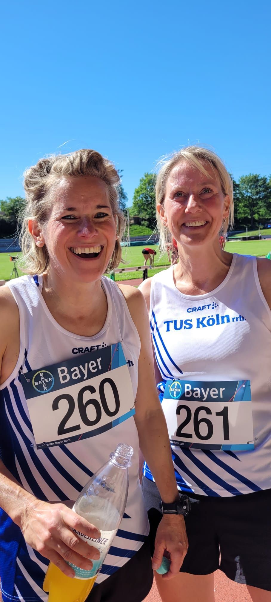 Los geht’s mit der 4-x-100-Meter-Staffel. Kirsten schickt den Staffelstab auf die Reise, übergibt ihn Verena, sie an Sabine und die an Alexandra. Ihr Ziel: Das Ding sicher durchbringen. In Staffeln kann ja immer alles passieren. „Von der U14 bis hin zu Olympia“, hatte im Vorfeld jemand geunkt. Aber es klappt, das Holz kommt an. Und womit wohl niemand gerechnet hätte: Mit der Zeit von 63,46 Sekunden unterbietet das Staffelquartett sogar deutlich die Qualifikation für die Deutschen Einzelmeisterschaften im August in Gotha (68 Sekunden).