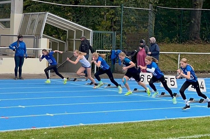 02.11.2025 / Leverkusen. Speedcross - das heißt 800m querfeldein, zwei Läufe, die schnellsten sichern sich einen Platz im Finale, alle anderen im Lauf der Lucky Looser. "Nach einem sehr tristen Oktober hatten die Leverkusener Glück mit dem Wetter bei der 5. Auflage ihres Speed & Talent-Cross. Die Strecke ging über einen Rasen Parkour über 400m mit einem kleinen selbst angelegten Hügel", zeigte sich Mittelstrecken-Coach Arndt Fontes auch in diesem Jahr angetan von der Veranstaltung. Für unsere Läuferinnen und Läufer aus dem Running Team ist der Speed-Cross in Leverkusen bekanntes Terrain. Diesmal standen sie aber ungewohnt gemeinsam mit den Sprinterinnen und Sprintern aus unserer U18/U20 Wettkampfgruppe an der Startlinie. Trainer Carl Seeliger hatte den Lauf in den Trainingsplan eingebaut und seine Athletinnen und Athleten ebenfalls auf die Cross-Strecke geschickt. Kein Verein war im Lauf der U18 stärker vertreten - nicht mal der Ausrichter TSV Bayer 04 Leverkusen. Mit Mara Kösters, Ida Friedrich, Charlotte Janus, Frida Böddeker, Janneke Brill, Ruby Lenssen, Matilda Palm, Mia Rüsing und Amelie Feinauer waren mehr als ein Drittel der 24 Starterinnen im TuS-Trikot unterwegs. Mara Kösters schaffte den Sprung ins Finale und wurde achte. Sehr schöne Platzierungen im Lucky Looser-Lauf gelangen Ida und Charlotte mit den Plätzen 4 und 5.