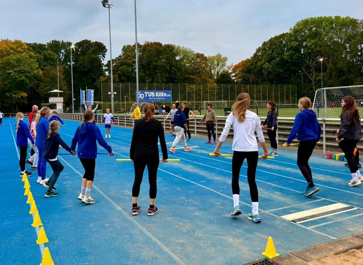 Die U-14-Trainerinnen Luca Reinhardt, Anja und Natalie Roller wollen ihren Athletinnen und Athleten besser informierte Eltern bieten. Darum laden sie zum Saisonabschluss am letzten Tag vor den Herbstferien zum Familientraining ein. Ihr Team, aber ausnahmsweise auch die Eltern dürfen auf die blaue Bahn im Sportpark Höhenberg. Gemeinsam trainieren Erwachsene und Minderjährige anderthalb Stunden lang.