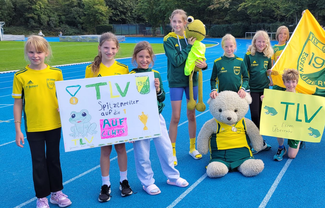 27.09./Köln. Was für ein schönes Finale! Was für eine schöne Stimmung in unserem Stadion! Aus dem ganzen Landesverband waren die U12-Teams zum diesjährigen Finale um den Jochen Appenroth Pokal angereist - aus Erkelenz, Hilfarth und Essen..., aus Kevelaer, Ratingen und Düsseldorf ... aus Krefeld, Solingen, Leichlingen und Leverkusen..., und aus Grevenbroich Viersen, Haan, Wesseling, Porz und Dormagen. Sie hatten Fahnen, selbst gemalte Schilder und Banner mitgebracht, viel Unterstützung durch familiy & fans und jede Menge gute Stimmung. Mit soviel Wettkampffreude und Sonne über unserer blauen Bahn konnte das Finale 2025 nur ein Erfolg werden.