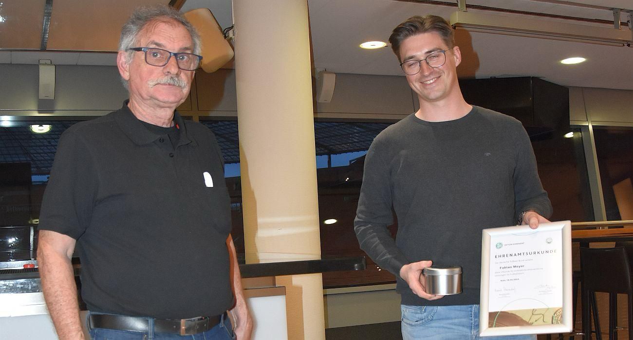 Wir freuen uns, bekannt zu geben, dass unser Mitglied Fabian Meyer im Rahmen des Ehrenamtsabends 2023/2024 des Fußballkreises Kölns eine besondere Auszeichnung erhalten hat. Der Deutsche Fußball-Bund (DFB) ehrte Fabian im Rahmen des FVM-Ehrenamtspreis für sein herausragendes Engagement und seine wertvollen Beiträge zum Fußball in unserem Verein. Am Dienstag, den 16.04.2024 wurden eine Reihe von Ehrenamtlern*innen für ihre teils langjährige Tätigkeit in ihren Vereinen durch den Ehrenamtsbeauftragten des Fußballkreises Köln, Heinz Osten, ausgezeichnet, nachdem Kölns Kreisvorsitzender Werner Jung-Stadié alle Gäste in der BayArena in Leverkusen begrüßt hatte.