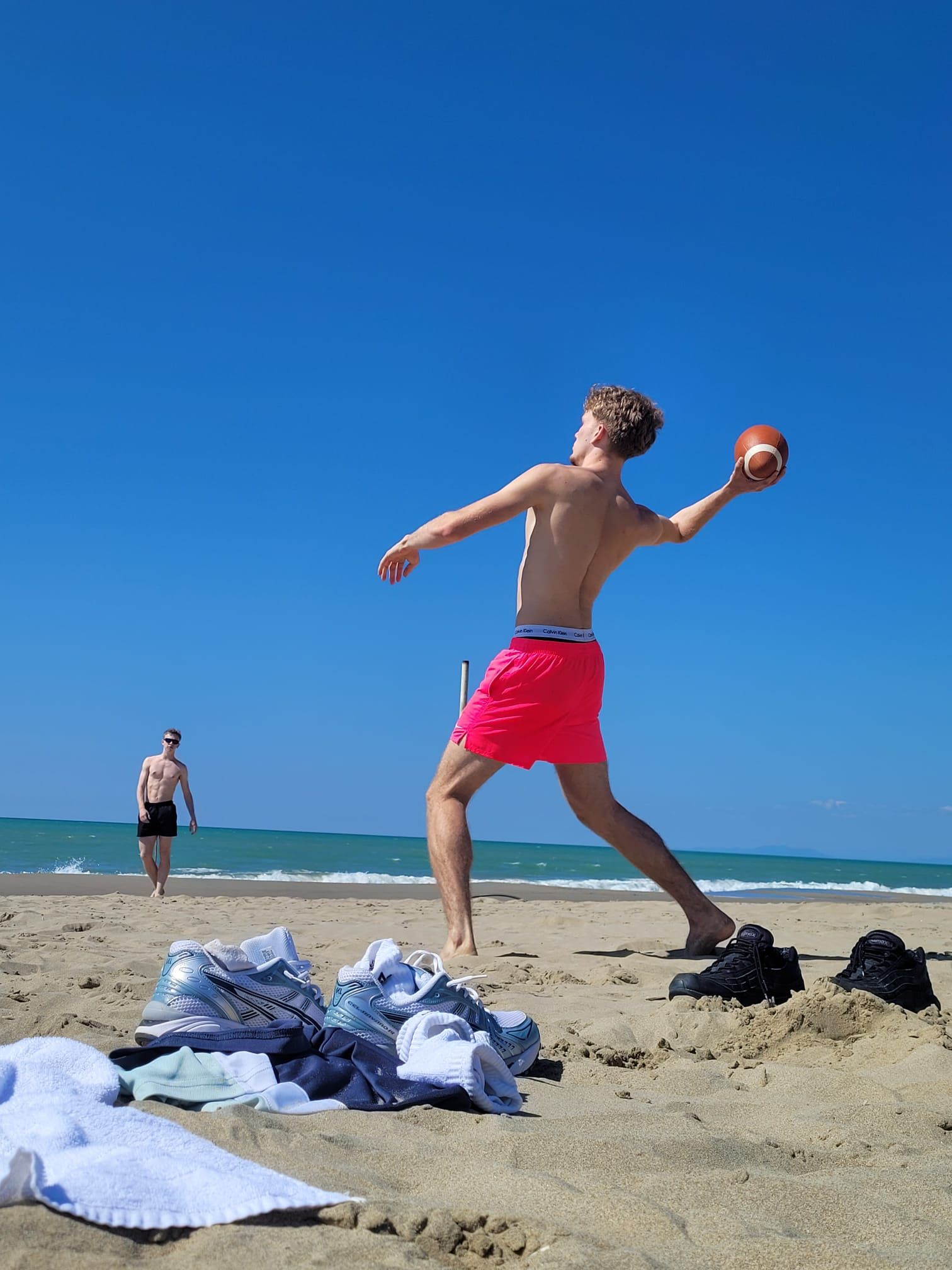 07.04.2026. In Italien, in Portugal und in Deutschlands Norden trifft man aktuell auf TuS-Design! Vier Gruppen sind derzeit unterwegs, um fern vom Alltag an Stränden, auf Wegen und in fremden Stadien Grundlagen für die Freiluftsaison zu legen. Die Mittelstreckengruppe ist mit den Trainern Martin Block und Arndt Fontes in Tirrenia in der Toskana. Auf "der anderen Seite" auf fast gleicher Höhe - an der Adriaküste - trainieren "Sprint / Sprung bis U23" mit Carl Seeliger, während die Älteren mit Dieter Dylong an Portugals Südküste in Alvor sind. Seit Ostersamstag ist auch die U14 / U16 unterwegs. Mit den Jüngeren geht die Reise noch nicht ganz so weit. Sie sind mit dem Trainerteam Natalie Roller, Luca Reinhardt, Yanick Roller und Anthony Schwarz in Meppen im Emsland. Bei den aktuell warmen Temperaturen können allerdings auch sie in T-Shirt und kurzer Hose trainieren! Alle Standorte melden gute Trainingsbedingungen und gute Laune! Das freut uns Daheimgebliebene! Ein besonderes Dankeschön gilt den Trainerinnen und Trainern, die solche besonderen Erlebnisse möglich machen. Natürlich nehmen die jungen Sportlerinnen und Sportler viel mehr mit als nur sportlich eine gute Form.