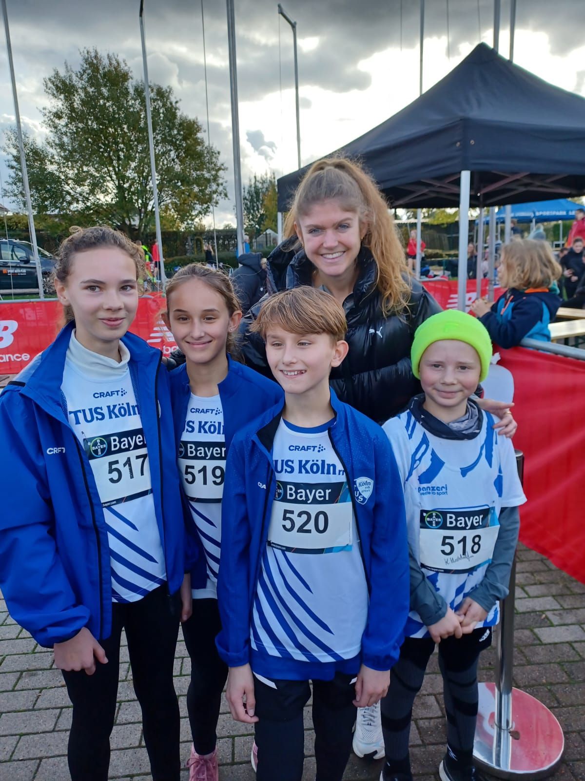 Auch Kirsten Fontes freute sich über die Leistungen ihres Nachwuchs-Laufteams mit Athletinnen und Athleten der Jahrgänge 2016 bis 2011. Am Start in der U10 waren Nina Blum und Severin Janus, in der U12 Livie Feiss, Rosalie Janus und Liam Feiss. Die beste Platzierung gelang Liam mit Platz 2. Um eine Sekunde musste er den Sieger aus Wattenscheid ziehen lassen. Ein besonderes Erlebnis war der Wettkampf sicherlich für alle unsere jungen Läuferinnen und Läufer. Dafür sorgte nicht zuletzt Lauf-As Konstanze Klosterhalfen, die die Medaillen überreichte und sich für Fotos zu den Kindern stellte. Die längste Strecke "am Stück" an diesem Tag hatte Jan Exner, Jg. 2011, mit 1.600m zu bewältigen. Platz 12 für ihn in der M14. "Erneut eine schöne Abwechselung zum Training", zog Arndt ein abschließendes Fazit. Die nächste Abwechselung und Formüberprüfung folgen auf dem Fuße. Am nächsten Sonntag, 09.11., steht ein Cross in Krefeld auf dem Programm. Und am 15.11. geht´s zu den Landesmeisterschaften nach Xanten. Wir wünschen euch viel Erfolg, liebes Running-Team! Die Srinterinnen und Sprinter werden ihren nächsten Wettkampf wieder auf Tartan mit eigenen Bahnen für jede und jeden und deutlich kürzeren Strecken absolvieren. Wie schön aber, dass es dieses "Treffen" gab!