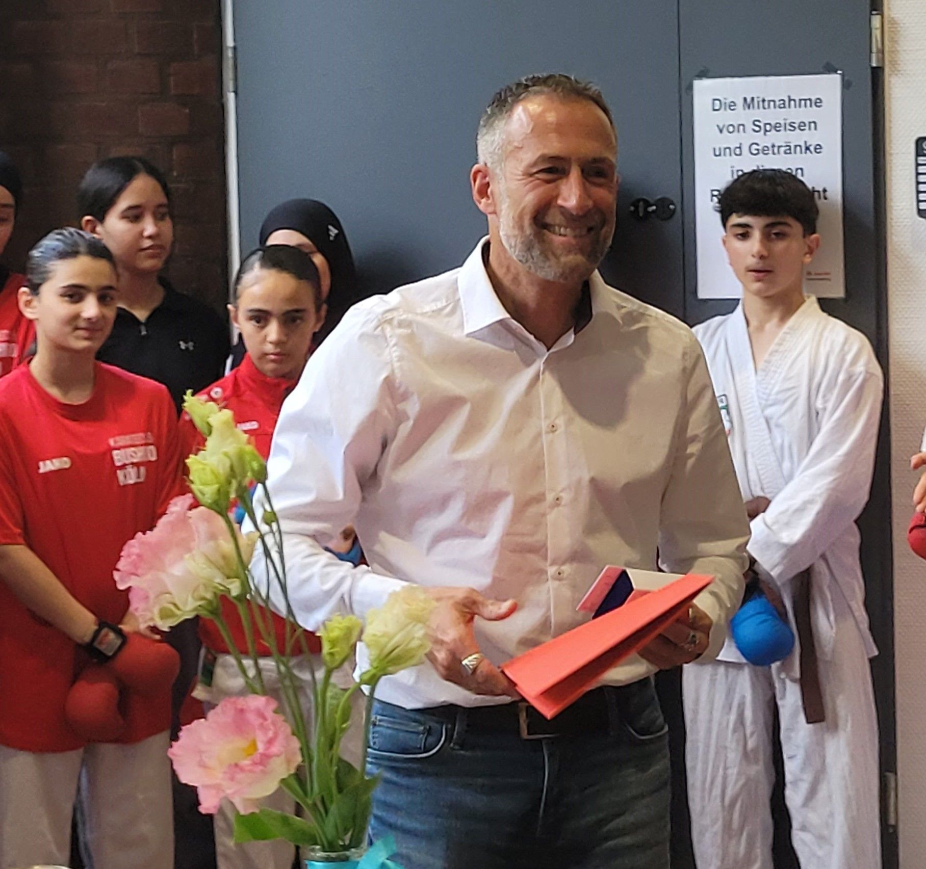 03.07. Köln. Geladene Gäste der Stadt Köln: Lynn Pöppelmann, Branko Marijan, Jan Merheim, Thorsten Bönisch, Finn Merheim und Lars Jucken (Bild von links) erhielten im Stadthaus des Bezirkes Köln Kalk eine besondere Auszeichnung für ihre Leistungen in den Jahren 2022 und 2023. Um die kleine Sportplakette der Stadt Köln verliehen zu bekommen, muss es schon "Top 3" in Deutschland sein. Das ist durchaus anspruchsvoll! In einem netten Rahmen mit Musik und Karate-Demonstration ehrten Bürgermeisterin Frau Greven-Thürmer und Ralf Voigt als Vertreter des Bezirkrats nicht nur erfolgreiche Sportlerinnen und Sportler sondern auch Menschen, die sich im Ehrenamt im Verein engagieren und Sport überhaupt erst möglich machen. Wir freuen uns sehr, dass aus unseren Reihen in diesem Jahr Thorsten Bönisch mit der Sportehrenurkunde der Stadt Köln ausgezeichnet wurde. Seit Jahren koordiniert er viele kleinere und auch größere Baustellen auf unserer Sportanlage - zuletzt auch unser "Brunnen-Projekt". Und auch in der Tennisabteilung ist er mit seinem Engagement um den Kinder- und Jugendbereich vom "TuS-BuS" bis hin zum Neuaufbau vieler Jugendmannschaften nicht wegzudenken.