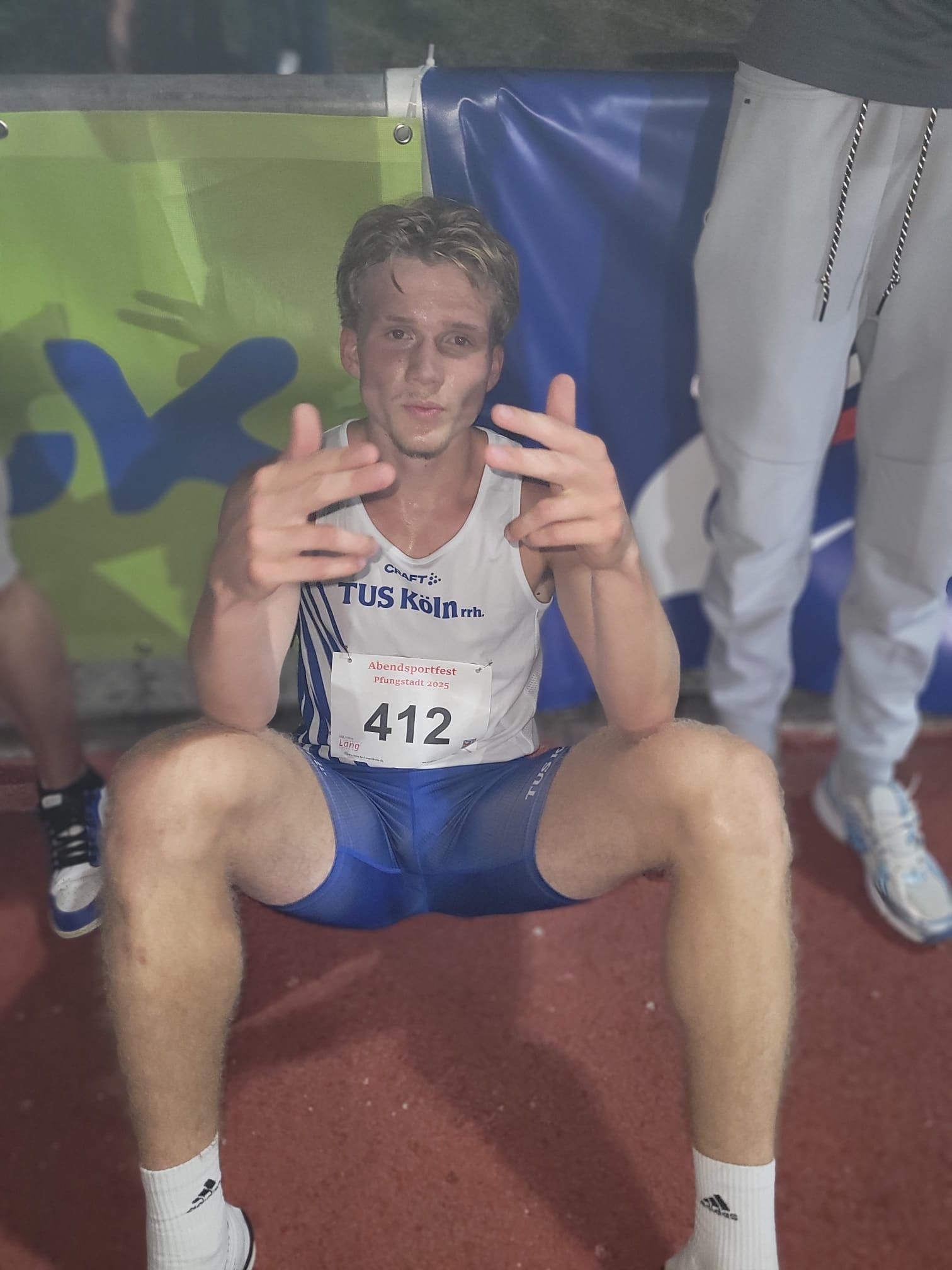 20.08./Pfungstadt. Das internationale Sportfest in Pfungstadt bot für die nationalen und internationalen Mittelstreckler noch einmal eine Möglichkeit, sich für die WM im September in Tokio zu qualifizieren (13. - 21.09.). Allein über 800m männlich gab es 124 Meldungen! Die Chance auf große und leistungsstarke Felder nutzten auch unsere Läufer. Als erste ins Rennen ging Liane Gardeweg. Im dritten 800m-Lauf der Frauen kam sie mit 2:11,42 min nah an ihren Hausrekord ran. Noch einen Tick besser lief es bei unseren Männern. Direkt im ersten Lauf purzelten zwei pBs. Die eine für Jan Merheim, der sich nah am Tempomacher hielt und in 1:51,67 ins Ziel kam. Die andere für Yanis Kern. Auch er konnte das schnelle Tempo mitgehen und lief in einem für ihn störungsfreien Rennen mit 1:52,67min einen neuen Hausrekord. Und auch über 1500m gab es zu späterer Startzeit noch eine persönliche Bestleistung: Finn Merheim lief 3:54,48min und eroberte mit dieser Zeit "nebenbei" die interne TuS Saison-Spitze, die bis zu dem Augenblick Yanis Kern gehört hatte.