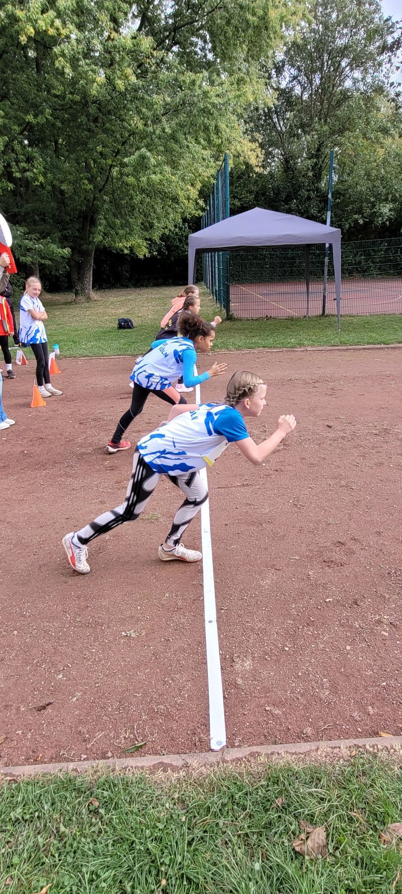 So viel positive Energie wie unsere 8 und 9jährigen Wettkampfathletinnen und -athleten auf die Sportanlage der Buirer Grundschule zauberten, kann nur Freude machen. Und leistungsfördernd ist diese positive Energie offensichtlich auch. Im Vergleich mit den Kindern aus Wesseling, Euskirchen, Habbelrath und Buir konnte sich unser Nachwuchs prima behaupten. In jeder der vier Disziplinen Weitsprung, Ballwurf, Sprint und Bananenkistenrennen galt es, sich möglichst weit vorne zu platzieren. Aus den vier Platzziffern bildet sich dann das Gesamtergebnis: Das Kind mit der niedrigsten Platzziffersumme gewinnt. So einfach erklärt und doch so herausragend gemacht, wenn es dann tatsächlich zu einem Podestplatz reicht. Und auf dem Podest fanden sich gleich acht TuS-Kids in den insgesamt vier Wertungsklassen wieder. Bei den achtjährigen Mädchen gelang Dana Nieswand der Sprung auf den Bronzerang, bei den gleichaltrigen Jungen Miika Koecher, knapp vor Tom Deistler auf Platz vier. Noch besser lief es für die Neunjährigen. Lisbeth Rente war die beste des 16köpfigen Feldes. Knapp dahinter dann auf dem geteilten zweiten Platz zwei weitere unsere Mädels, Ava Romagnoli und Sophia Czernowski. Und auch bei den Jungs gab es ein komplettes TuS-Podest. Und nicht nur das. Im Feld der 21 Jungen waren unter den ersten sechs gleich fünf TuS-Kids. Samuel Amuzu als auch bester Weitspringer der gesamten Veranstaltung konnte sich über Platz 1 freuen vor Malik Kaciran und Mika Schulte. Auf Platz fünf dann Timur Coskun vor Elyas Lafrig und Jonathan von Ahlen. Ganz ober zu stehen ist natürlich noch einmal etwas Besonderes, die Show boten aber alle 19 TuS-Kids – mit jeder Anfeuerung, jedem Ruf, jedem Abklatschen.